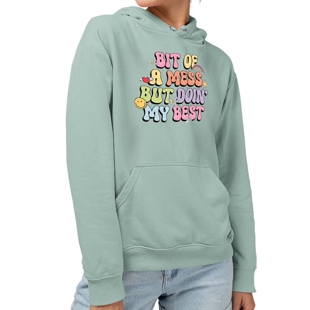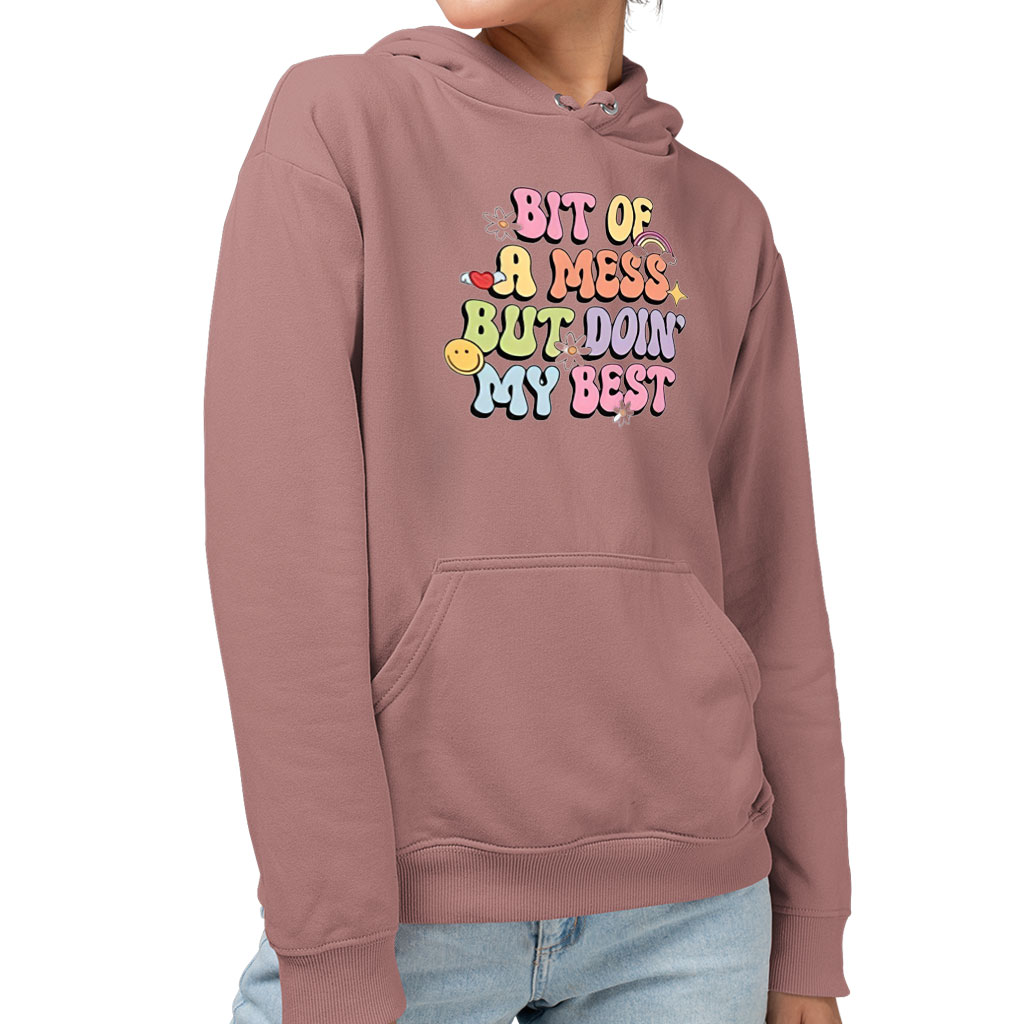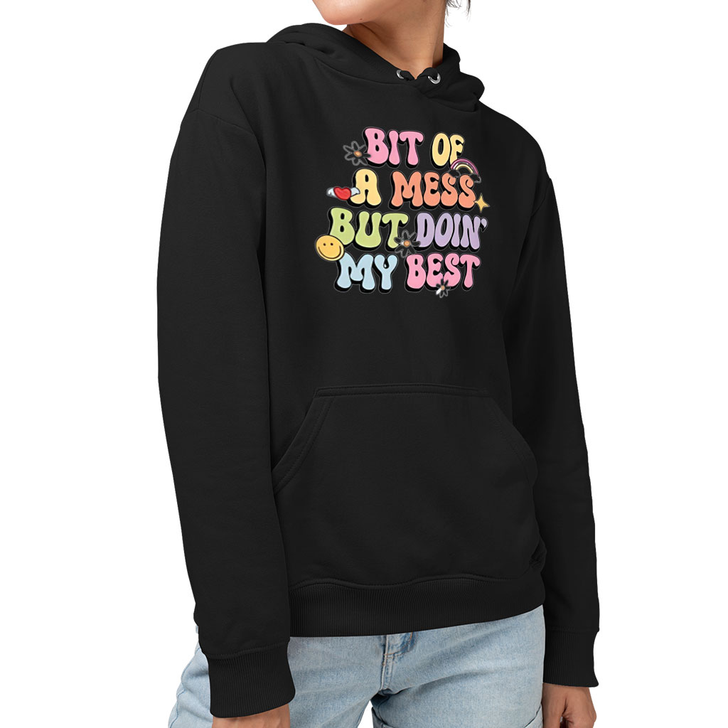 Bit Of A Mess But Doin’ My Best Sponge Fleece Hoodie – Aesthetic Clothing – Funny Clothing