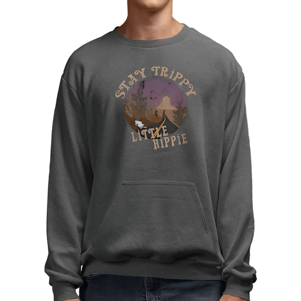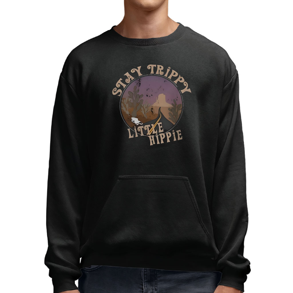 Boho Stay Trippy Sweatshirt with Pocket – Psychedelic Enthusiast Gift – Boho Apparel