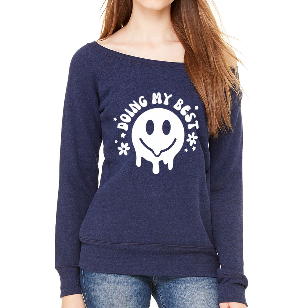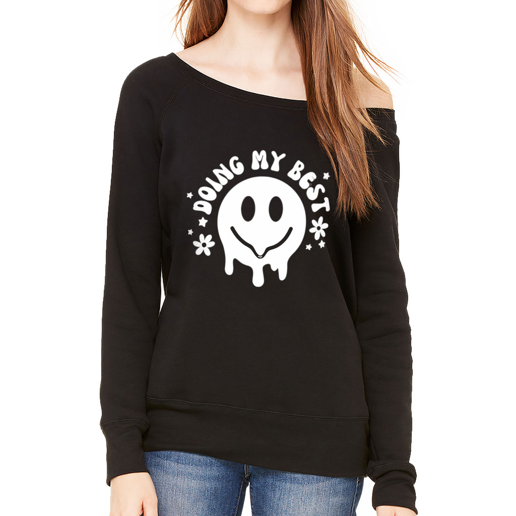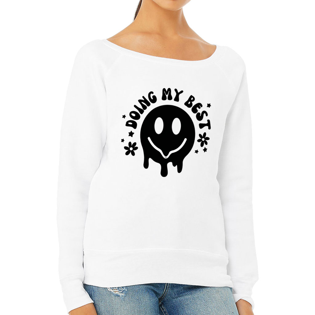 Melting Smiley Doing My Best Wide Neck Sweatshirt – Smiley Clothing – Funny Clothing