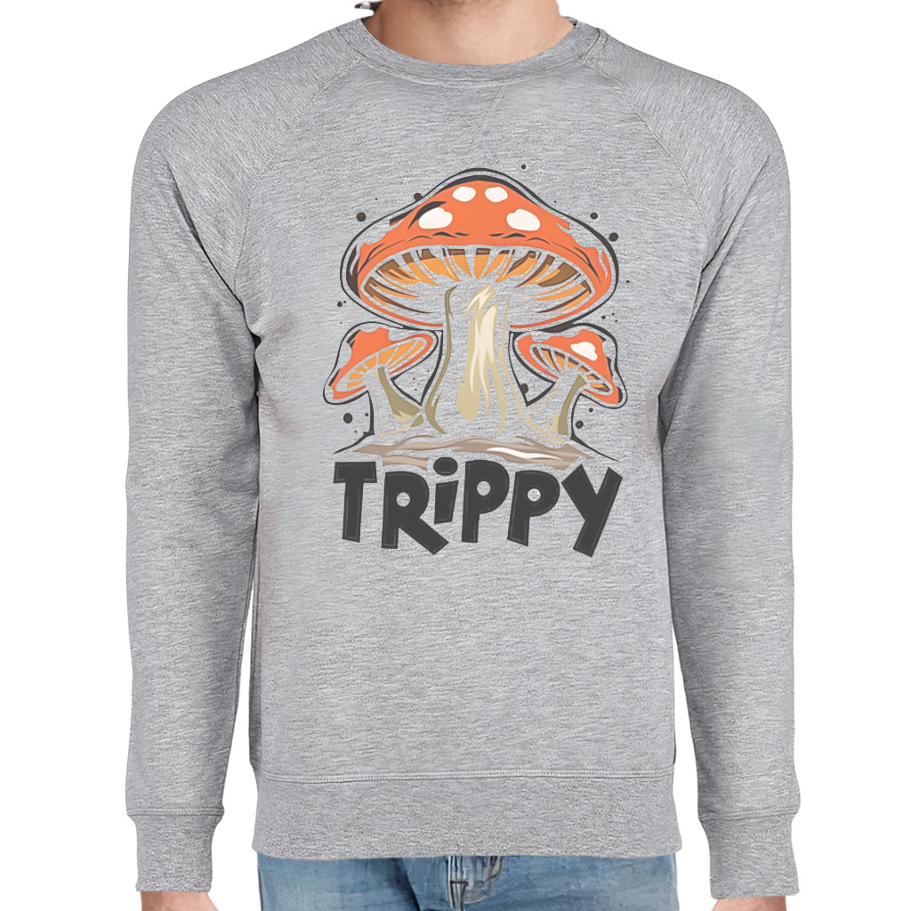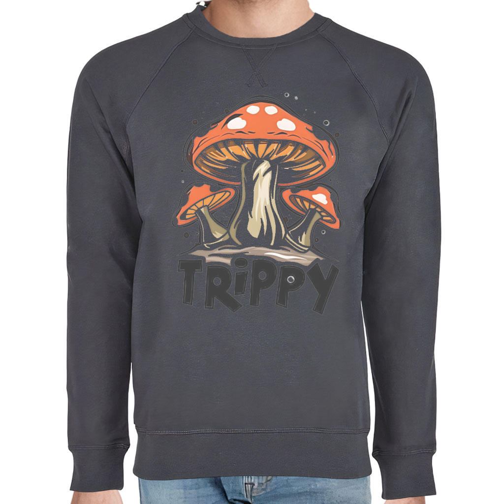 Mushrooms Trippy Raglan Sweatshirt – Trippy Mushroom Apparel – Mushroom Lover Gift