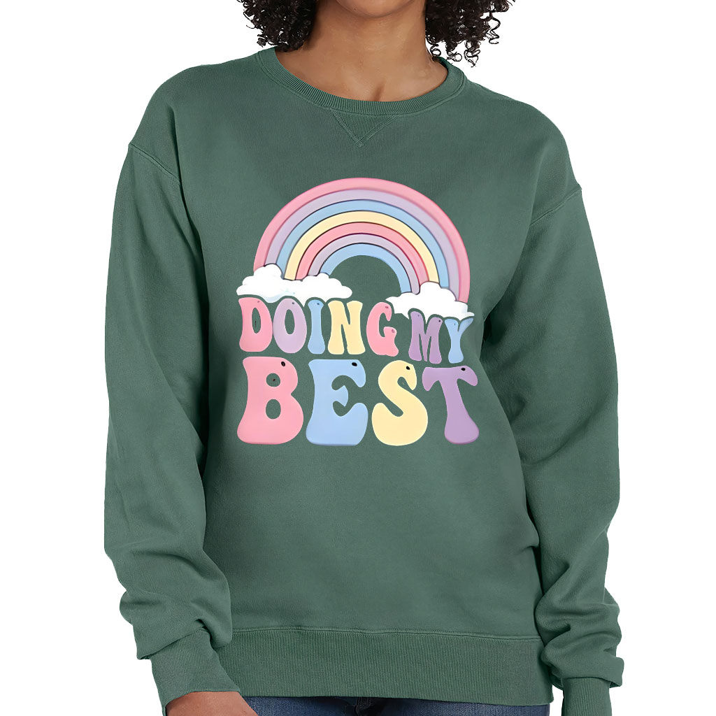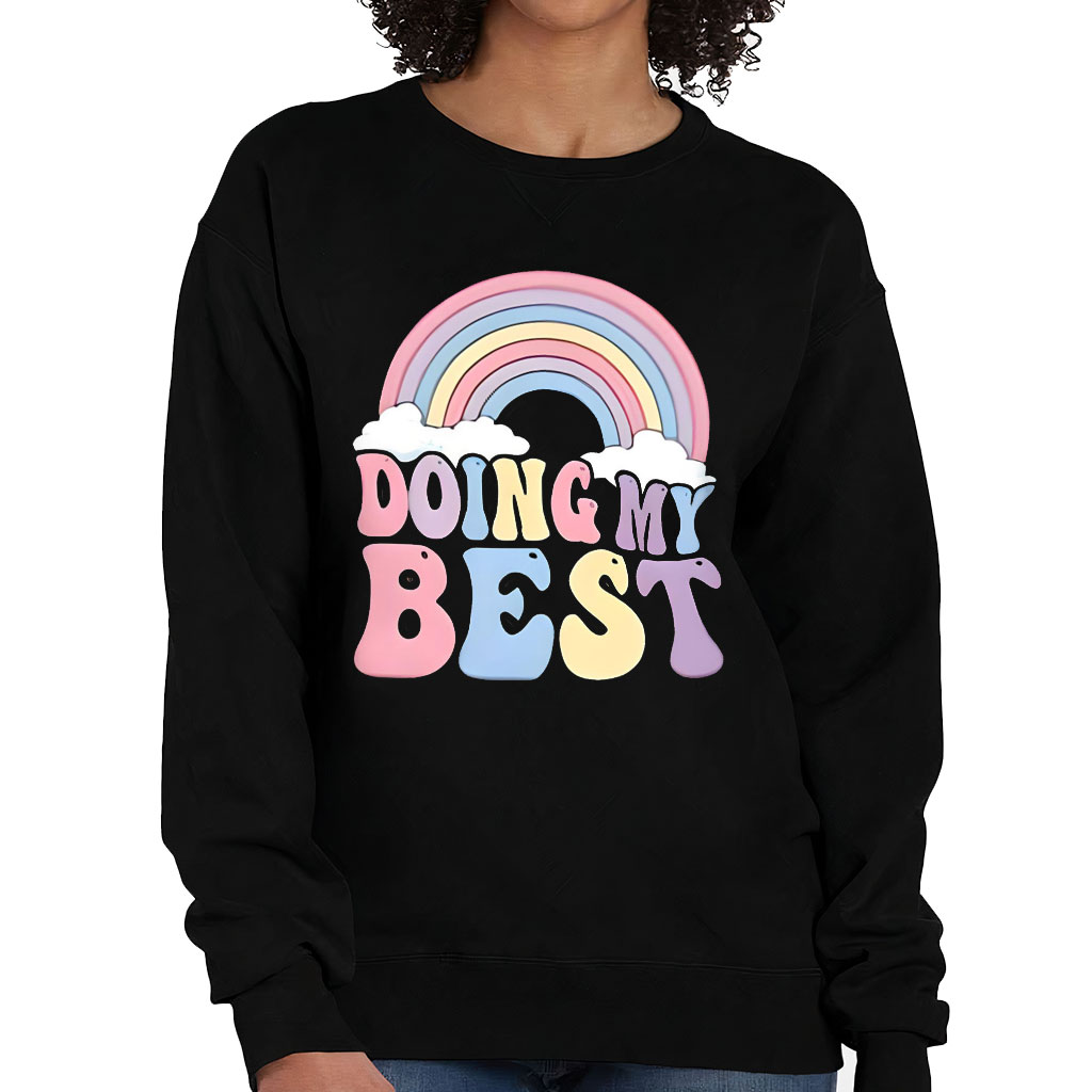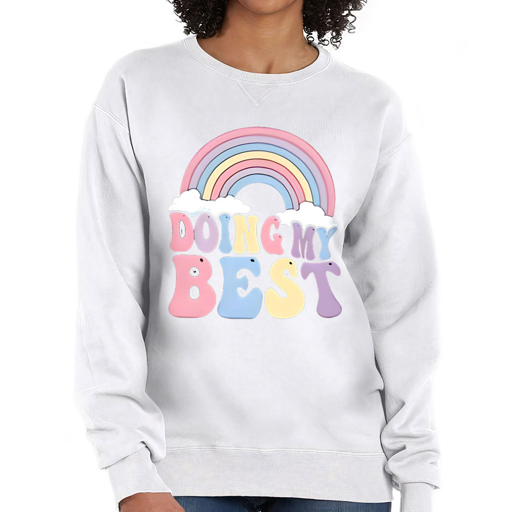 Made of soft, skin-friendly high-quality cotton and polyester material, breathable and cozy to wear without a scratch. Rainbow Doing My Best Crewneck Sweatshirt is great to wear on cold mornings, spring, fall, or winter days, adding more warmth without bulk.