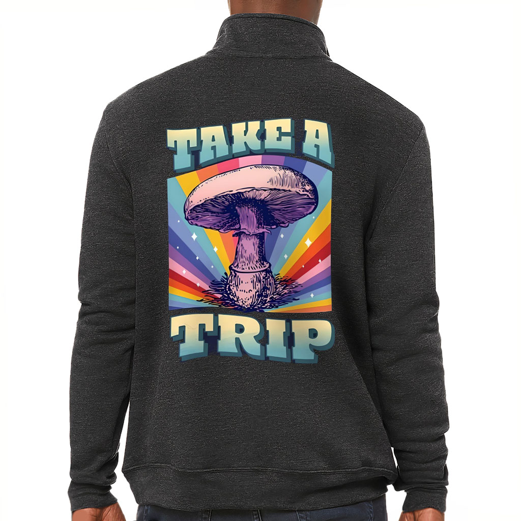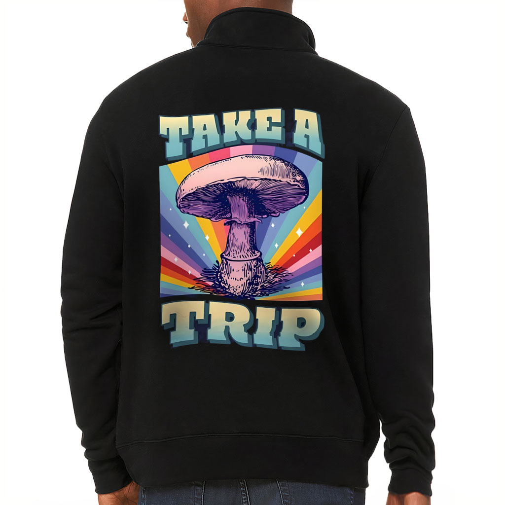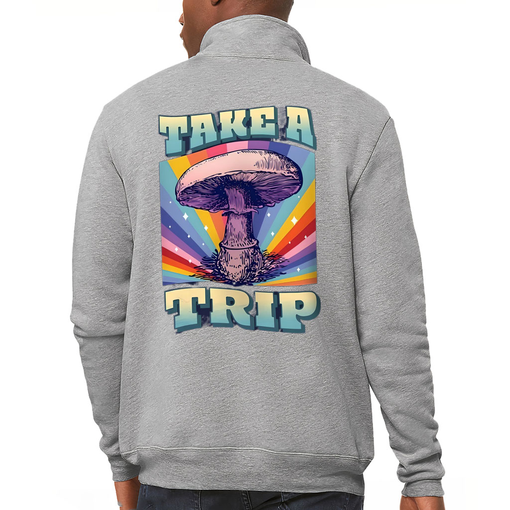 Take a Trip Zip Pullover – 70s Clothing – Mushroom Patterned Clothing